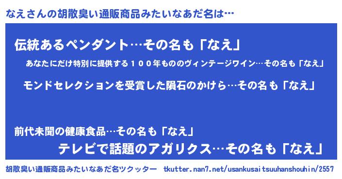 | 意味不明あだ名 | 『眠気覚ましガムなえ味』『自称なえ』 |