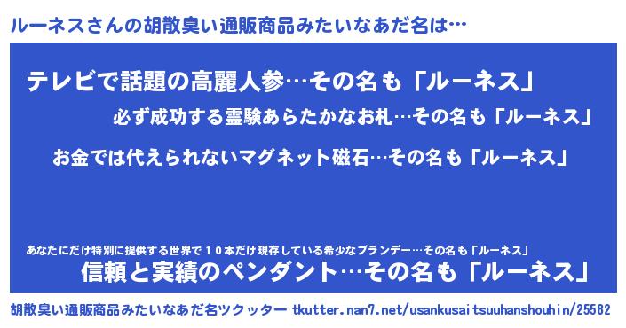 | ヒーロー風カッコイイあだ名 | 『愛の使者ルーネス』『最強戦士ルーネス』 |