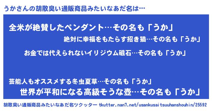 | ヘコむあだ名 | 『うか太郎』『酢こんぶ』『うか(笑)』 |