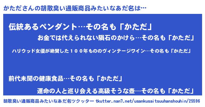 | ヘコむあだ名 | 『かたお』『なまこ酢』『かただ(爆)』 |