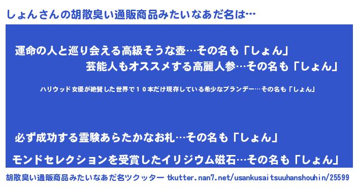 | 料理風あだ名 | 『しょんのカルパッチョ風』 |