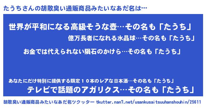 | 意味不明あだ名 | 『眠気覚ましガムたうち味』『自称たうち』 |