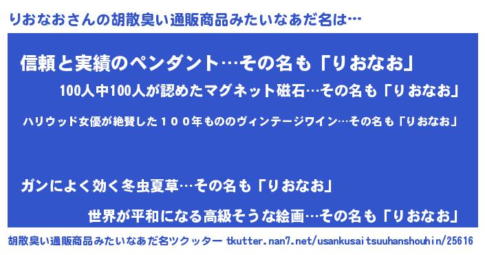 | 男性向けラノベタイトル風あだ名 | 『魔弾の王とりおなお』 |