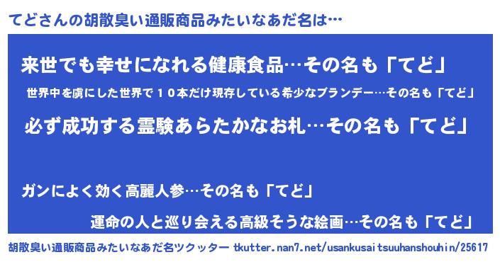 | 2回繰り返すあだ名 | 『てどてど』『ぐちぐち』『ててどど』 |