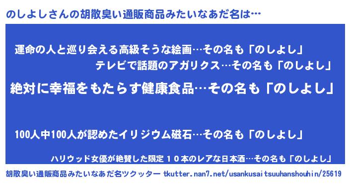 | ヘコむあだ名 | 『のしよし(爆)』『牛乳』『のし太郎』 |