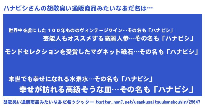 | 男性向けラノベタイトル風あだ名 | 『ノーゲーム・ノーハナビシ』 |