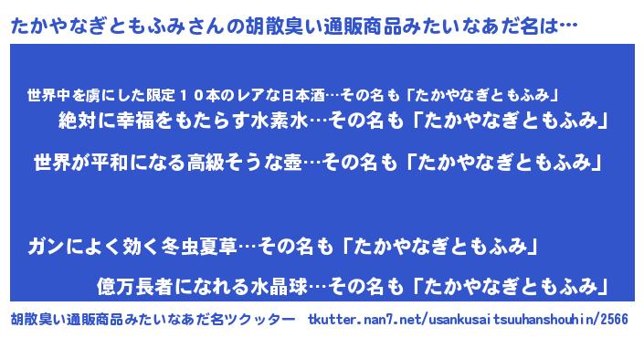 | 意味不明あだ名 | 『たかやなぎともふみフォーエバー』 |