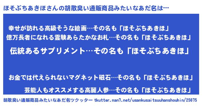 | ポケモン風あだ名 | 『ヒホソブチアキホ』『ホソブダネ』 |