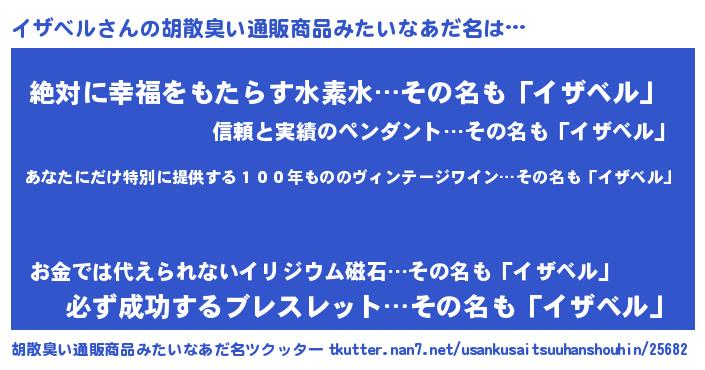 | 意味不明あだ名 | 『住所不定無職イザベル(4歳)』 |