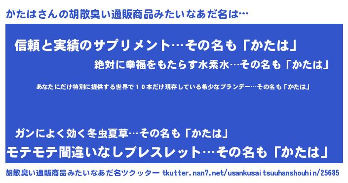 | 意味不明あだ名 | 『住所不定無職かたは(85歳)』 |