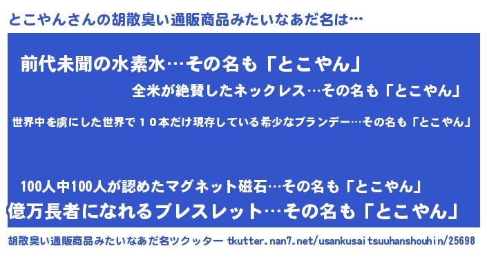 | ヘコむあだ名 | 『とこやん(苦笑)』『とこっふぃ~』 |