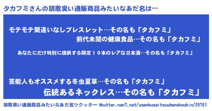 | 意味不明あだ名 | 『住所不定無職タカフミ(43歳)』 |