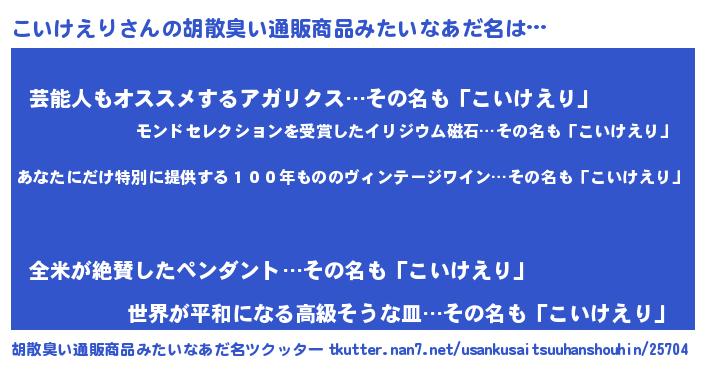| 意味不明あだ名 | 『ニラ科こいけえり属』『自称こいけえり』 |