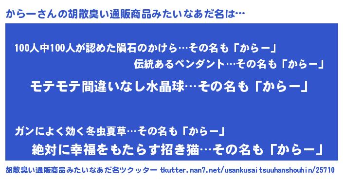 | 意味不明あだ名 | 『ペロリンからー』『永久保存からー』 |