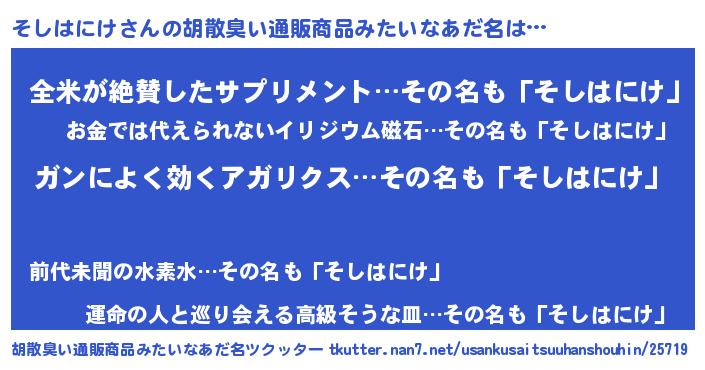 | 男性向けラノベタイトル風あだ名 | 『緋弾のソシハニケ』 |