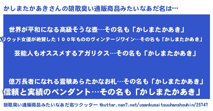| 肩書あだ名 | 『かしまたかあき閣下』 |