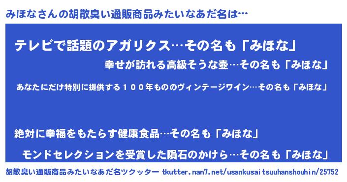 | ヘコむあだ名 | 『レバニラ』『みほな(笑)』 |