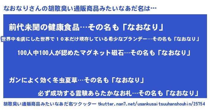 | ヒーロー風カッコイイあだ名 | 『正義の使者なおなり』『ネオナオナリ』 |