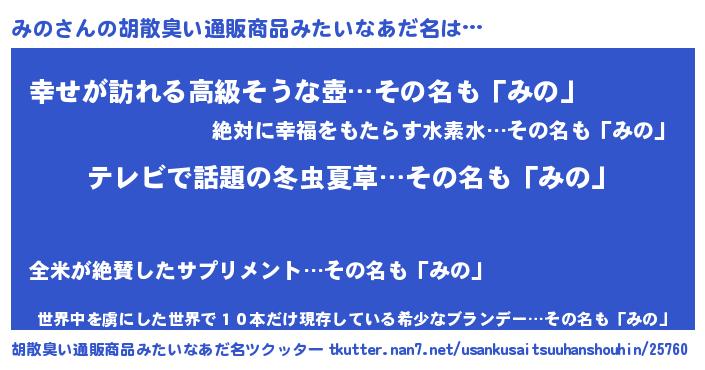 | 意味不明あだ名 | 『自称みの』『ニラ科みの属』 |