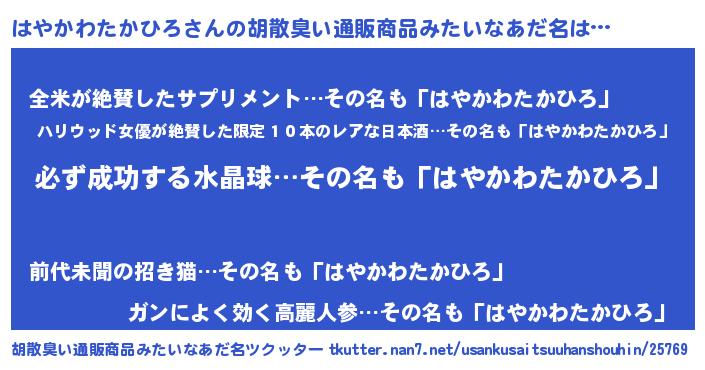 | 男性向けラノベタイトル風あだ名 | 『はやかわたかひろの憂鬱』 |