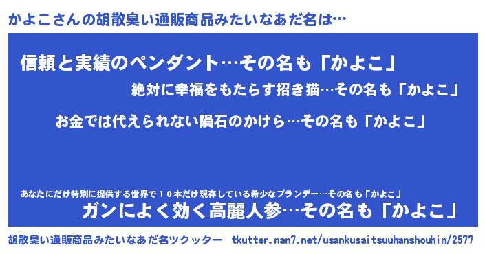 | 意味不明あだ名 | 『なめこ科かよこ属』『自称かよこ』 |