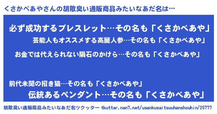 | 女子向けラノベタイトル風あだ名 | 『くさかべあや恋絵巻』 |