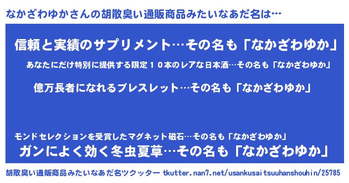 | 肩書あだ名 | 『なかざわゆか社長』『なかざわゆか大佐』 |