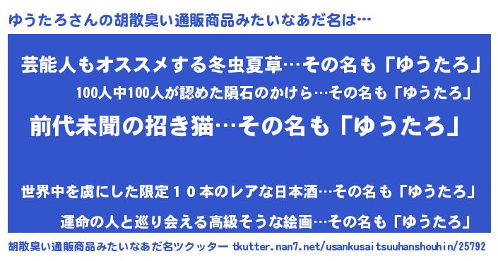 | ヘコむあだ名 | 『ゆうたろ(小並感)』『酢こんぶ』 |