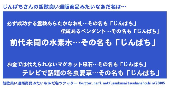 | ヘコむあだ名 | 『じんぱち(遠い目)』『じんっふぃ~』 |