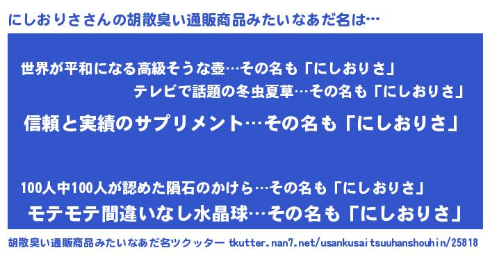 | 意味不明あだ名 | 『とにかく怪しいにしおりさ』 |