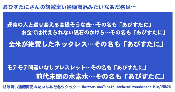 | ヘコむあだ名 | 『あびっぺ』『酢こんぶ』『あびもー』 |