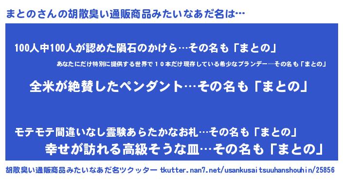 | ヘコむあだ名 | 『まとぷりん』『つくし』『まともー』 |