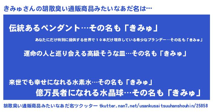 | 意味不明あだ名 | 『きみゅフォーエバー』『ペロリンきみゅ』 |