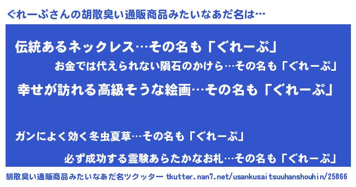 | 肩書あだ名 | 『ぐれーぷ総理大臣』『ぐれーぷ班長』 |