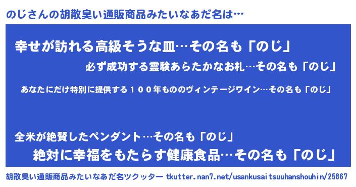 | ヒーロー風カッコイイあだ名 | 『仮面ノジダー』『ウルトラのじマン』 |