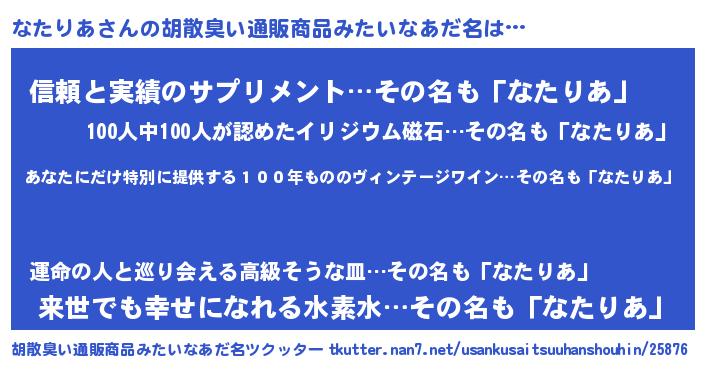 なたりあさんの胡散臭い通販商品みたいなあだ名をツクッター!