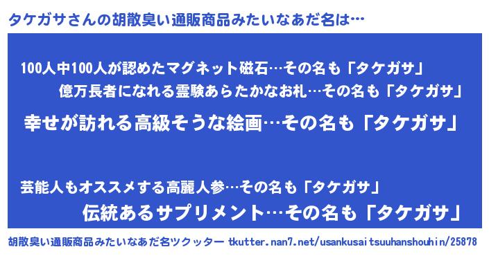 タケガサさんの胡散臭い通販商品みたいなあだ名をツクッター!
