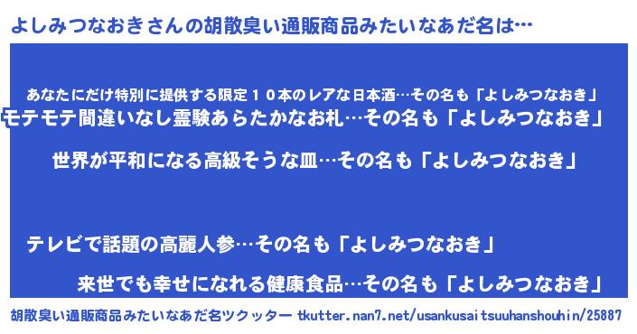 | ファンタジー風あだ名 | 『エターナルヨシミツナオキー』 |