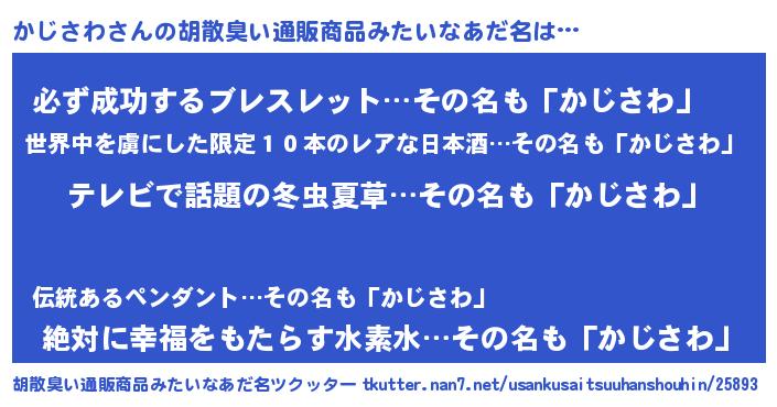 | 意味不明あだ名 | 『自称かじさわ』『ペロリンかじさわ』 |