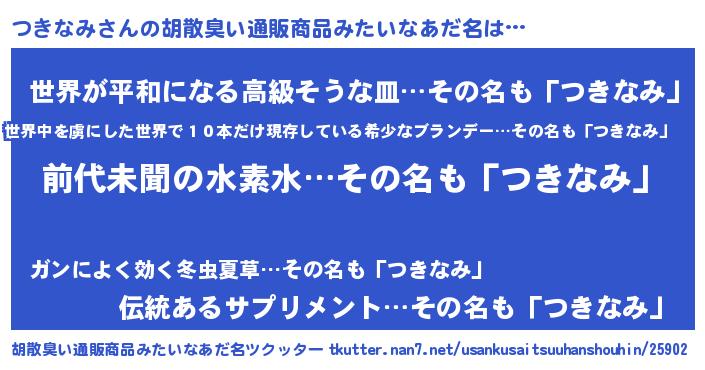 | ヒーロー風カッコイイあだ名 | 『ネオツキナミ』『ウルトラつきなみマン』 |