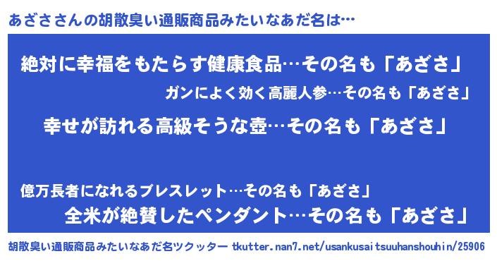 | 意味不明あだ名 | 『あざさフォーエバー』『永久保存あざさ』 |