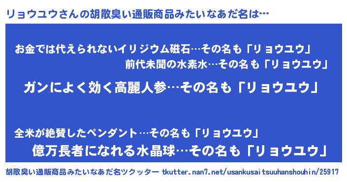 | 意味不明あだ名 | 『自称リョウユウ』『ペロリンリョウユウ』 |