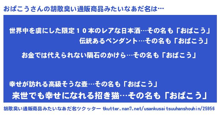 | ヘコむあだ名 | 『おばこう(震え声)』『おばっ子』 |