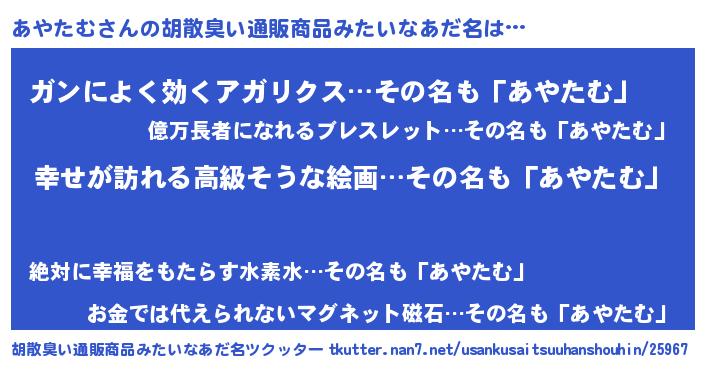 | 肩書あだ名 | 『あやたむ船長』『あやたむディレクター』 |