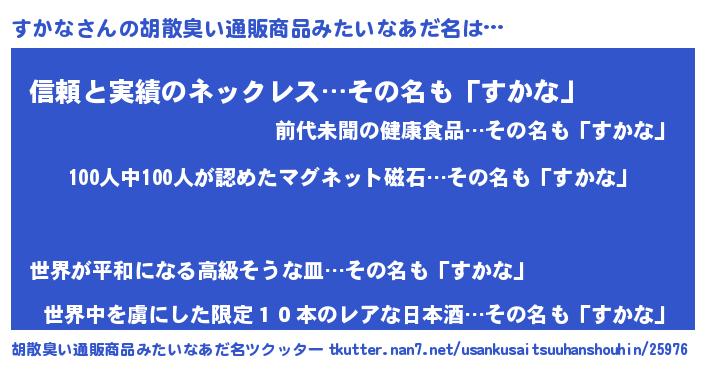 | ヒーロー風カッコイイあだ名 | 『友情の使者すかな』『魔戒騎士スカ』 |
