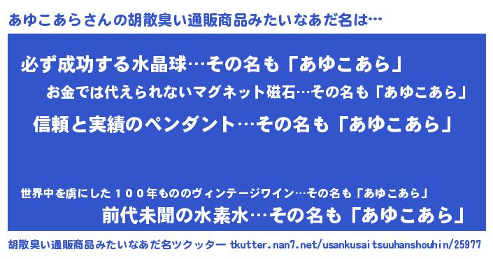 | ヘコむあだ名 | 『あゆぷりん』『あゆふぇ~』 |