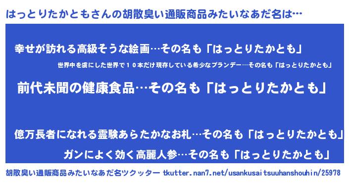 | 意味不明あだ名 | 『永久保存はっとりたかとも』 |
