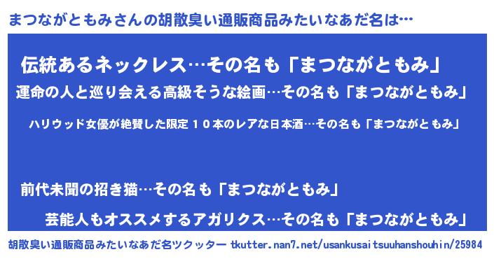 | 意味不明あだ名 | 『住所不定無職まつながともみ(14歳)』 |