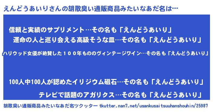 | 欧米人風あだ名 | 『ダレノガレえんどうあいり』 |