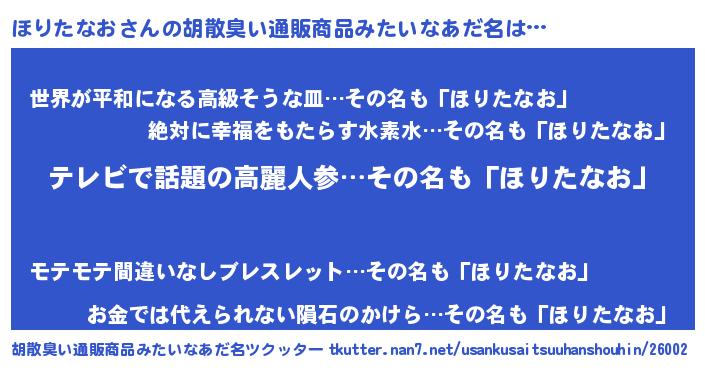 | 意味不明あだ名 | 『自称ほりたなお』『永久保存ほりたなお』 |